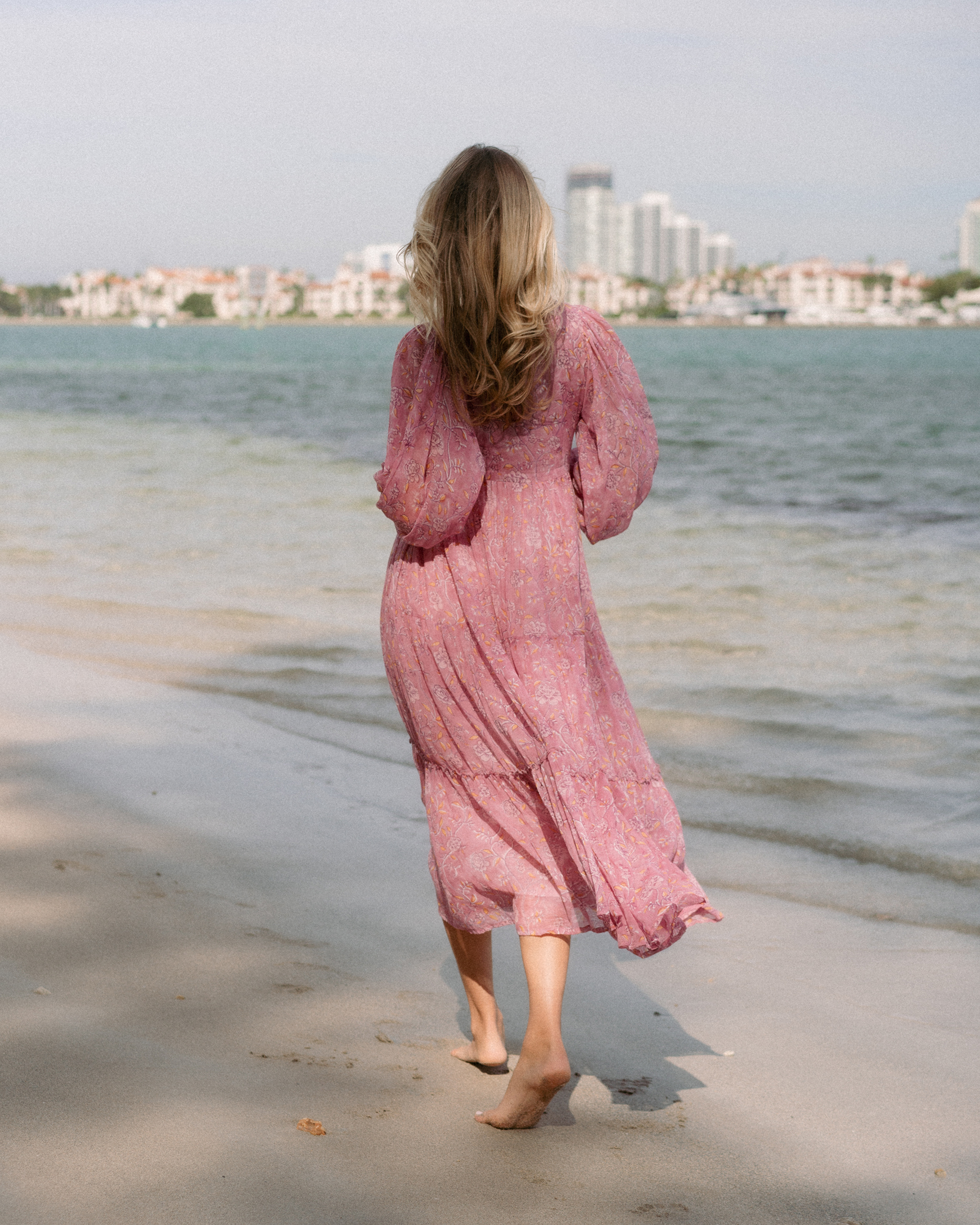 This dress feels like a freshly bloomed flower in our garden in the summers because of its beautiful colour and flared skirt. This is a maxi length version of Adira Mini dress. Adira Pink Maxi Dress is a timeless piece that reminds of victorian times. We love pairing it up with flats to make it look more dressy and chic.